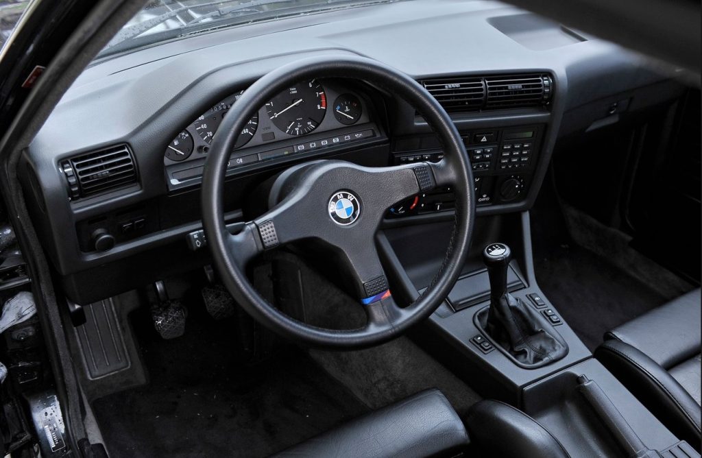Por dentro, el 320iS conservaba el diseño clásico del E30, con su disposición centrada en el conductor y una atmósfera de precisión mecánica. El salpicadero, ligeramente orientado hacia el piloto, mostraba una instrumentación completa, con un cuentarrevoluciones que llegaba a 8.000 rpm, algo poco común en un coche de su cilindrada. El velocímetro y los indicadores analógicos transmitían la sensación de estar en un coche hecho para conducir, no solo para desplazarse.