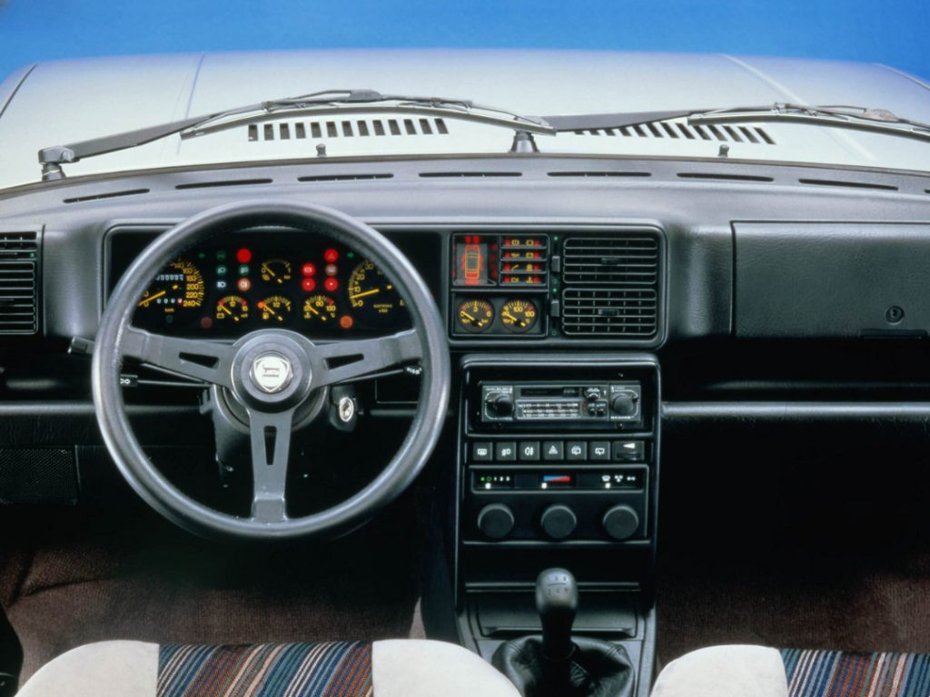 El habitáculo reflejaba esa misma filosofía de discreción técnica. El diseño interior seguía apostando por una ergonomía clara, con mandos grandes y bien ubicados, instrumentación legible y una posición de conducción relativamente elevada para los estándares deportivos. No había concesiones al dramatismo: los asientos, aunque con un mayor apoyo lateral en comparación con versiones convencionales, mantenían un enfoque claramente orientado al uso diario. Los materiales, típicos de la Lancia de la época, combinaban una apariencia sobria con una percepción de calidad cuidada, especialmente en ajustes y tapicerías.