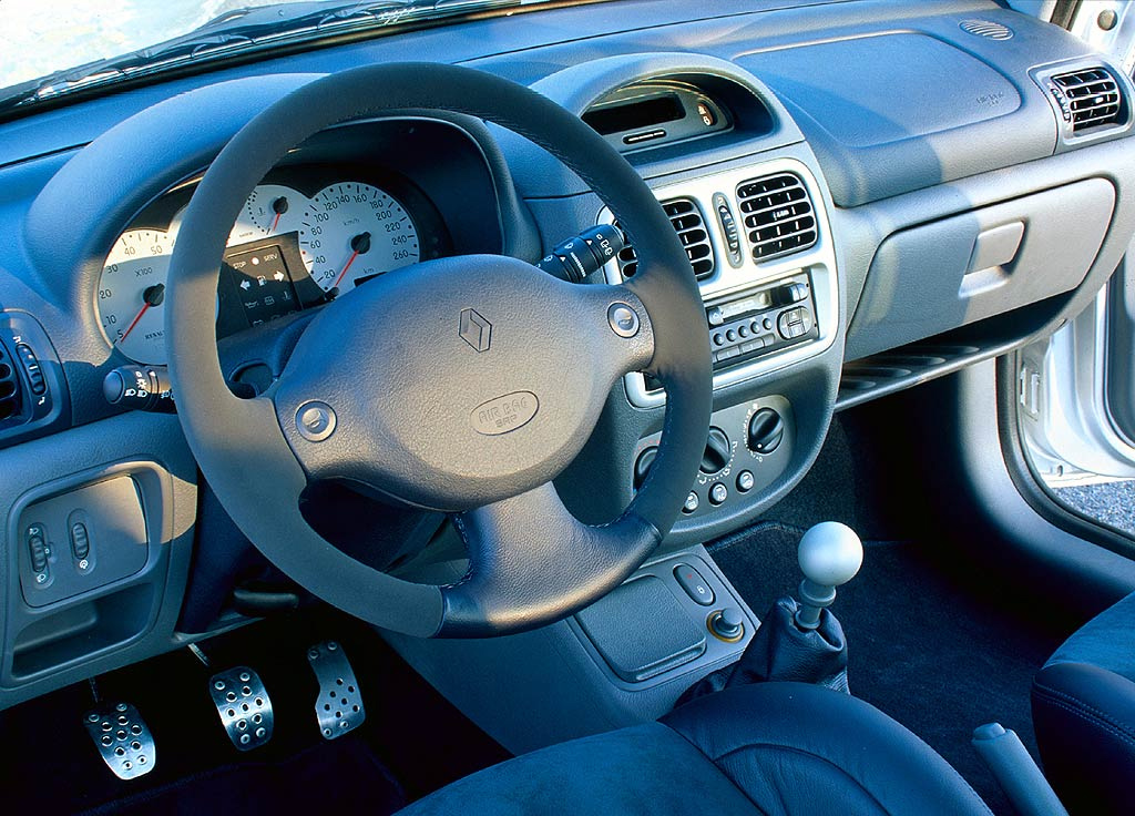 Renault quiso que el Clio RS fuese algo más que un juguete de fin de semana, por lo que incluyó un equipamiento completo para su época. Contaba con climatizador, cierre centralizado con mando, elevalunas eléctricos, airbag doble, ABS y equipo de sonido con CD y mandos en el volante. Todo ello lo hacía plenamente utilizable para el día a día, sin perder su enfoque purista.